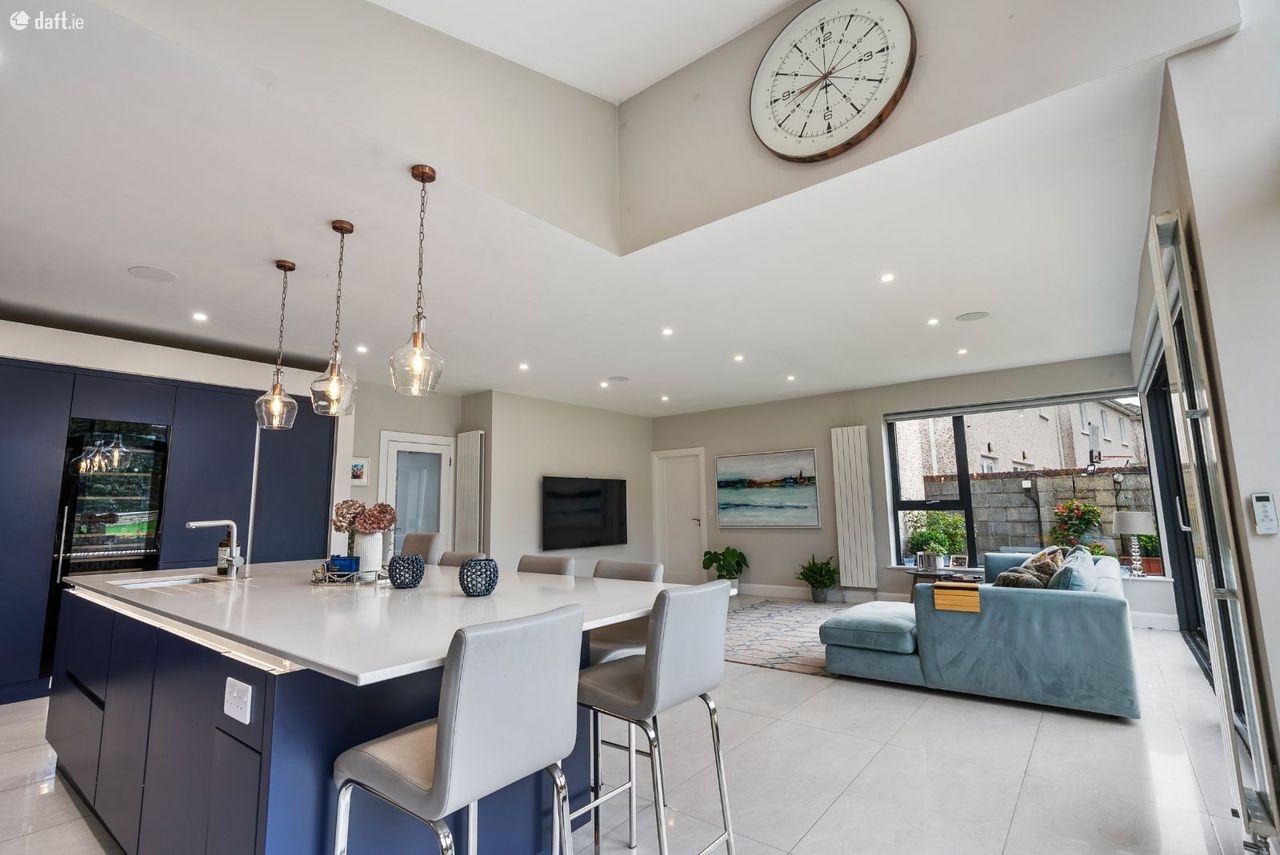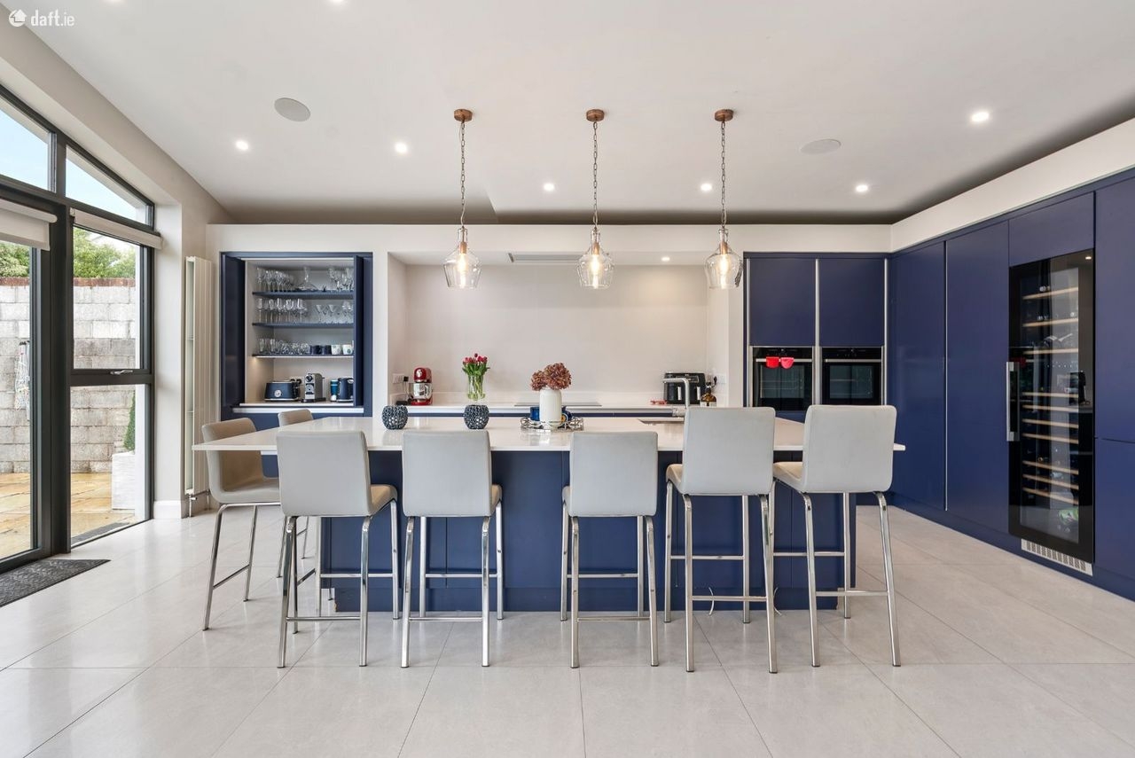 Jeremy Murphy and Associates are delighted to present this impressive five-bedroom detached family home benefiting from a stunning open plan extension to rear. It is situated in the highly sought-after residential enclave of Jacobs Island with fabulous water views to front. This beautifully presented property combines modern design, comfort, and convenience in one of Corks most desirable waterfront locations. Upon entering, you are greeted by a bright and spacious entrance hallway that sets the tone for the rest of the home. To the front of the property are two well-proportioned reception rooms a lounge and a sitting room offering excellent versatility for family living or entertaining. A guest WC is conveniently located off the entrance hallway. To the rear, the home opens into a magnificent extended open-plan kitchen, dining, and living area, designed for modern lifestyles. The space is bright and inviting, with large windows and patio doors drawing in natural light overlooking the rear garden. A practical utility room is located just off the kitchen/dining/living, providing additional storage and functionality. Upstairs, there are five spacious bedrooms, two of which feature en-suite bathrooms, while a stylish main bathroom serves the remaining rooms. The main bathroom is enhanced with a luxurious jacuzzi bath, great for relaxation. FEATURES The property was extended in 2018, enhancing the kitchen/dining/living space and improving the overall flow throughout the home. The bespoke kitchen, designed and fitted by ODriscolls Kitchens of Ballymacoda, showcases exceptional craftsmanship and premium finishes. The open-plan area is fitted with an integrated Denon surround sound system, fully controllable via mobile phone for a seamless audio experience. Other features include beautiful views overlooking McHugh Park and the water, adding to the sense of space and tranquility. Externally, the property benefits from a patio finished in Indian sandstone, tasteful back garden lighting, two garden sheds, and two outside taps. The attic is well insulated and accessed via pull-down stairs (Stira), providing additional convenient storage space. LOCATION Jacobs Island is a premier residential development known for its scenic setting, proximity to the waterfront, and easy access to a wealth of amenities. Residents benefit from direct access to Passage West and Blackrock via dedicated cycle paths and walkways, ideal for leisure, commuting, or weekend strolls. The property is within walking distance of Mahon Point Shopping Centre, which offers a wide range of shops, restaurants, cafs, and entertainment options. The South Link Road system and Cork City Centre are easily accessible, making this a perfect location for commuters. Public transport is well-served, with regular bus routes connecting the area to Cork City and surrounding suburbs. Another standout advantage is the direct pedestrian and cycle access to Pirc U Chaoimh and Blackrock without the need to use public roads, making it ideal for sports enthusiasts and eventgoers. The property is served by Bus ireann Route 215 from Jacobs Island, providing regular connections to Cork City Centre and surrounding suburbs. FRONT OF PROPERTY To the front of the property, there is a cobble-locked driveway providing off-street parking for up to two vehicles. The front garden is laid to lawn and includes side access. The property enjoys views over McHugh Park, a protected wildlife sanctuary, as well as stunning water views. ENTRANCE HALLWAY 6.09m x 2.58m A solid timber door with frosted glass panels opens into the entrance hallway, which features porcelain tiled flooring, recessed spotlighting, a central light fitting, and a radiator. The hallway also provides access to under-stair storage. SITTING ROOM 4.39m x 5.98m This bright and spacious sitting room features solid timber flooring, recessed spotlighting, two radiators, attractive coving along the ceiling and a bay window overlooking the front of the property. The room also includes a solid fuel stove. LOUNGE 4.91m x 3.86m This bright lounge features carpet flooring, one centre light, one radiator, attractive coving along the ceiling and a bay window overlooking the front of the property. The room also includes a gas fire with a beautiful surround. KITCHEN/DINING/LIVING 8.89m x 6.79m This open plan area features porcelain tiled flooring, recessed spotlighting, three central light fittings, and four radiators. Double glass-paneled doors open to the rear, complemented by sliding glass doors that also provide access to the rear garden. An array of windows allows for an abundance of natural light and offers pleasant views of the garden. The bespoke kitchen, designed by ODriscolls Kitchens in Ballymacoda, is finished to an exceptional standard and includes soft-close double-depth drawers, double wooden cutlery inserts, and double-depth saucepan drawers, along with an integrated three-piece bin system. A range of high-quality integrated appliances are included such as an integrated Whirlpool larder fridge, integrated Whirlpool fridge-freezer, dual-zone tall wine fridge, two tilt-and-slide Neff ovens, a Neff five-zone induction hob with integrated extractor fan, an integrated dishwasher, and a sink waste disposal unit. A central island provides ample storage and seating space. The adjoining dining/living area can comfortably accommodate a dining table with four to six chairs, as well as a couch. UTILITY ROOM 4.93m x 1.60m This area features porcelain tiled flooring, two central light fittings, and a radiator. It includes fitted units providing ample storage, along with under-counter storage for a washing machine, dryer, and freezer, and is plumbed for a washing machine. A sink and a wall-mounted drying rack are also fitted, providing added practicality. A PVC door offers access to the side of the property, and there is also a window overlooking the side. GUEST WC 1.70m x 1.55m The guest WC is designed for wheelchair 